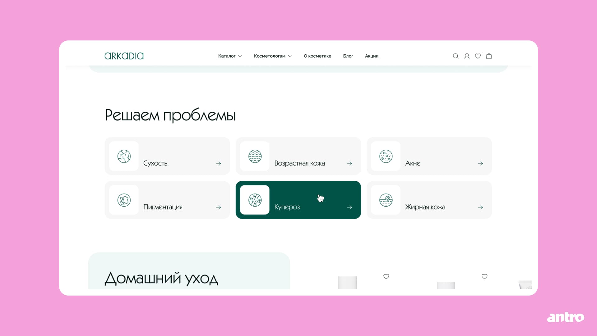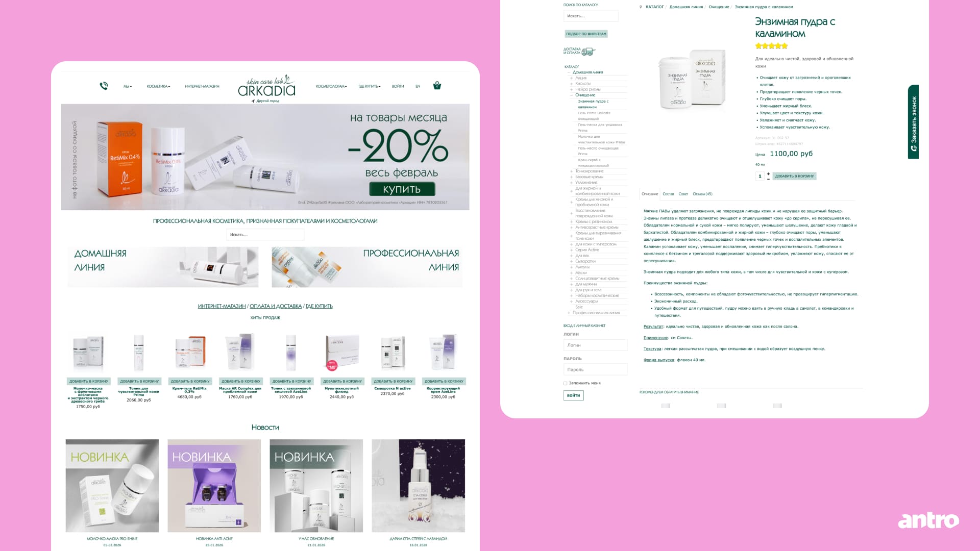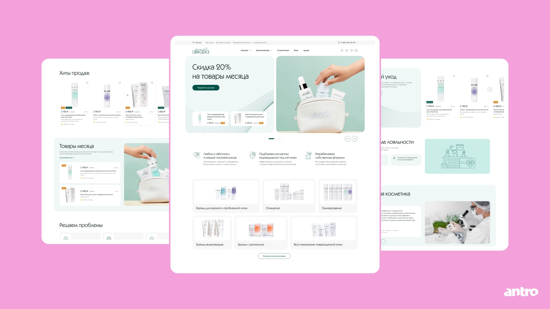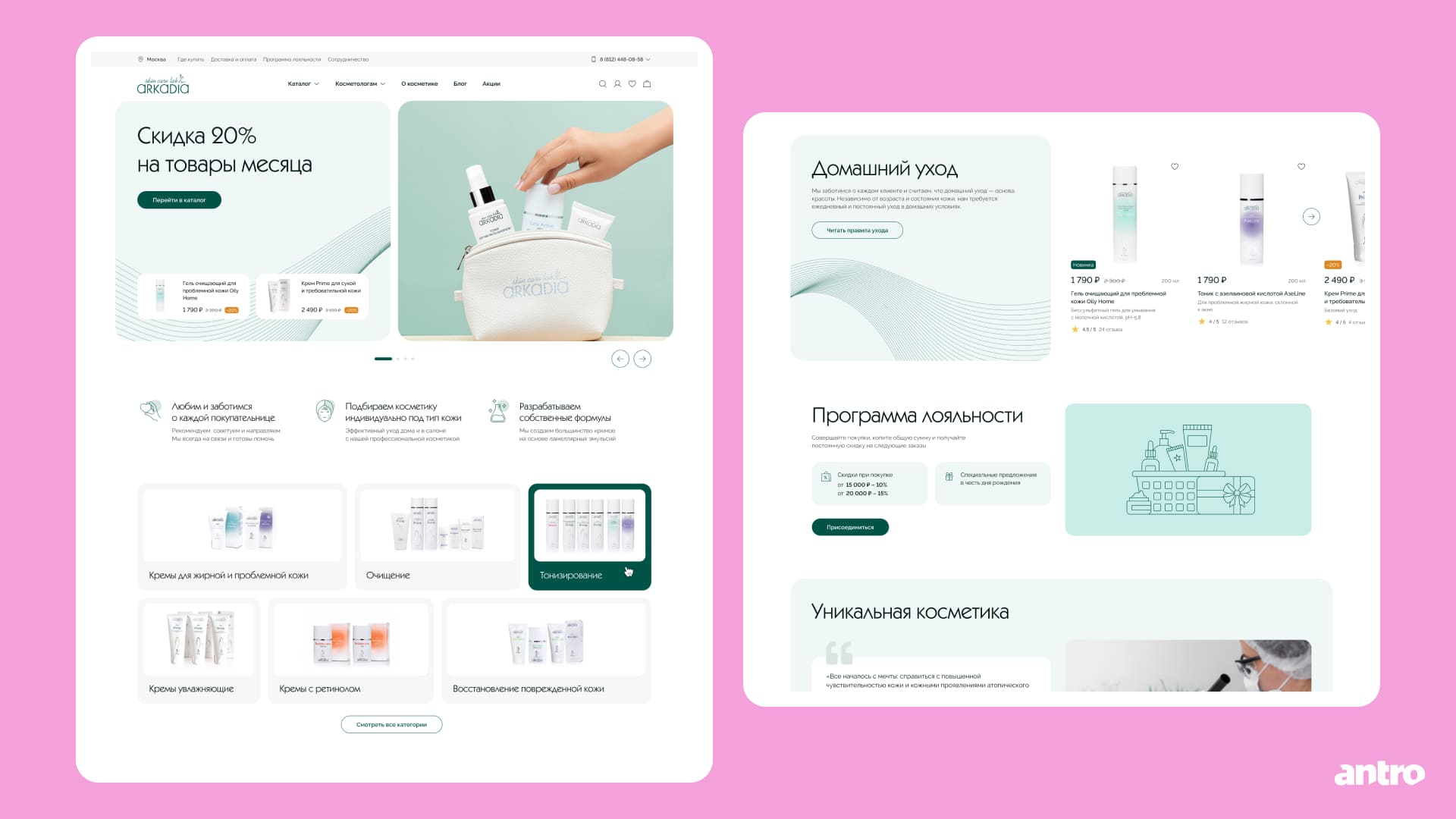 Редизайн для бренда профессиональной косметики с разделением сценариев для двух аудиторий