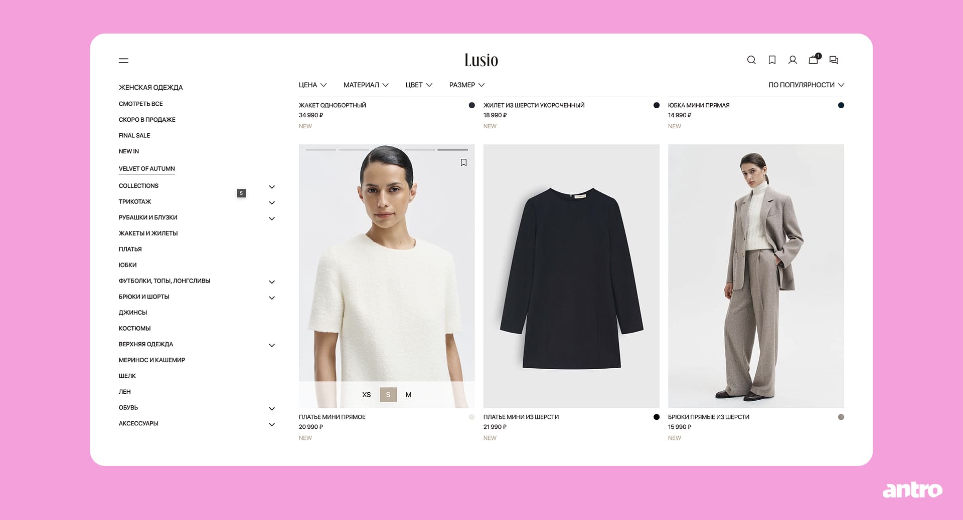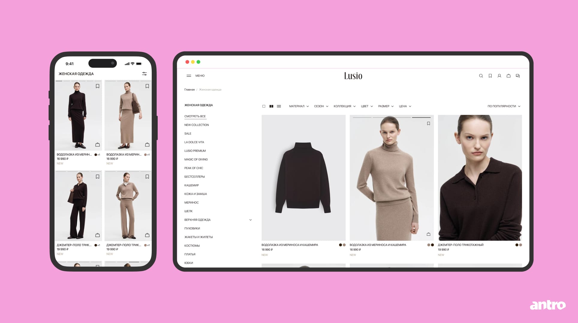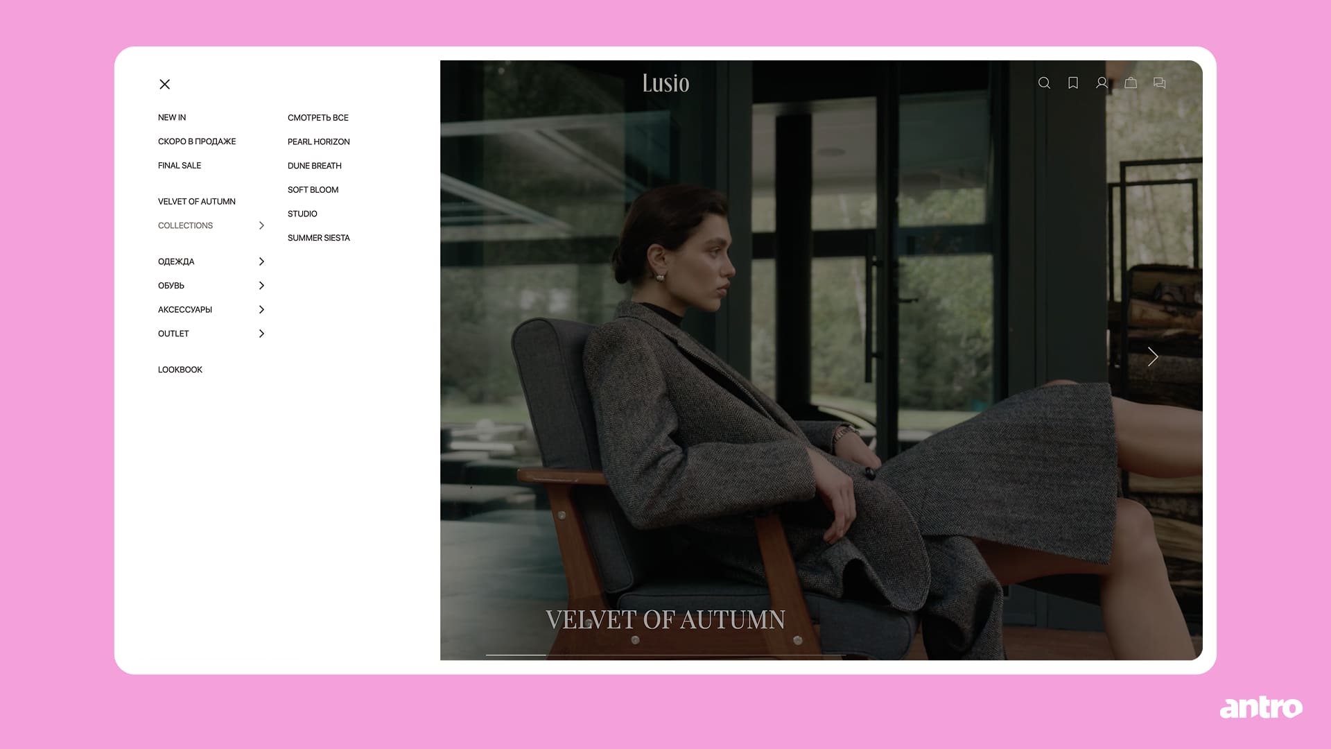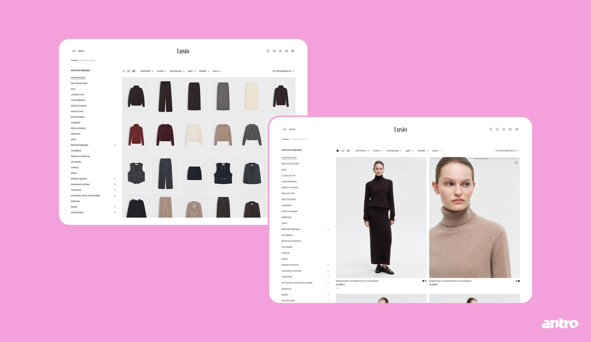 Редизайн усилил визуальную идентичность LUSIO, превратив сайт в современную, стильную и эмоциональную витрину бренда. Теперь ключевые страницы не только функциональны, но и эстетичны.