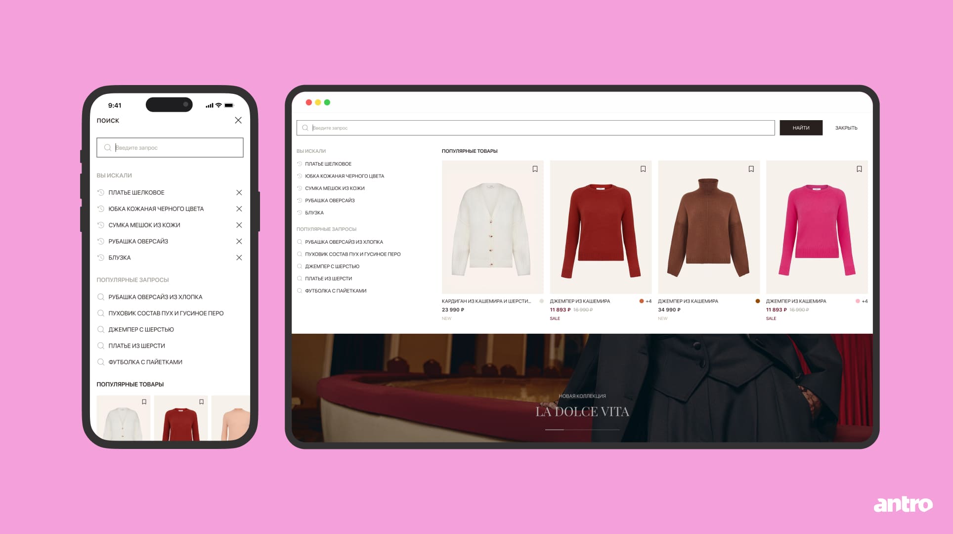 Внедрили «умный» поиск, который не только исправляет ошибки и опечатки, но и подсказывает популярные запросы и товары. При вводе текста поиск предлагает подходящие категории и конкретные товары, а карточки обновляются в реальном времени.