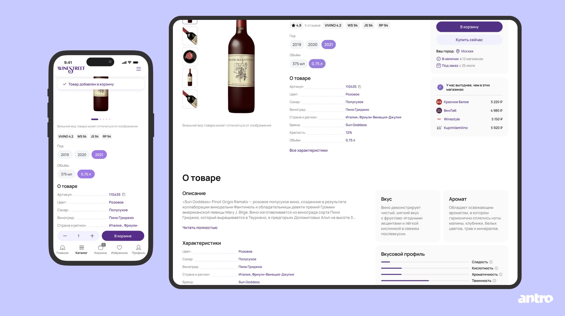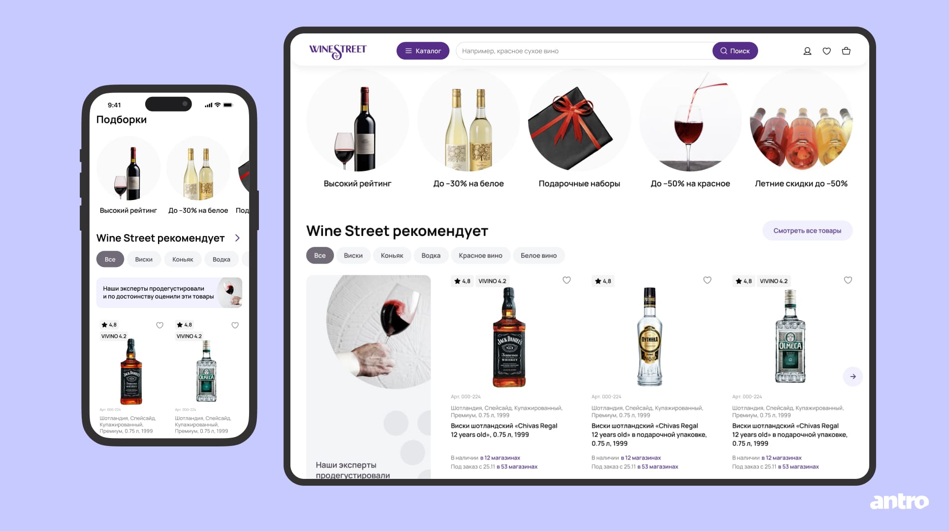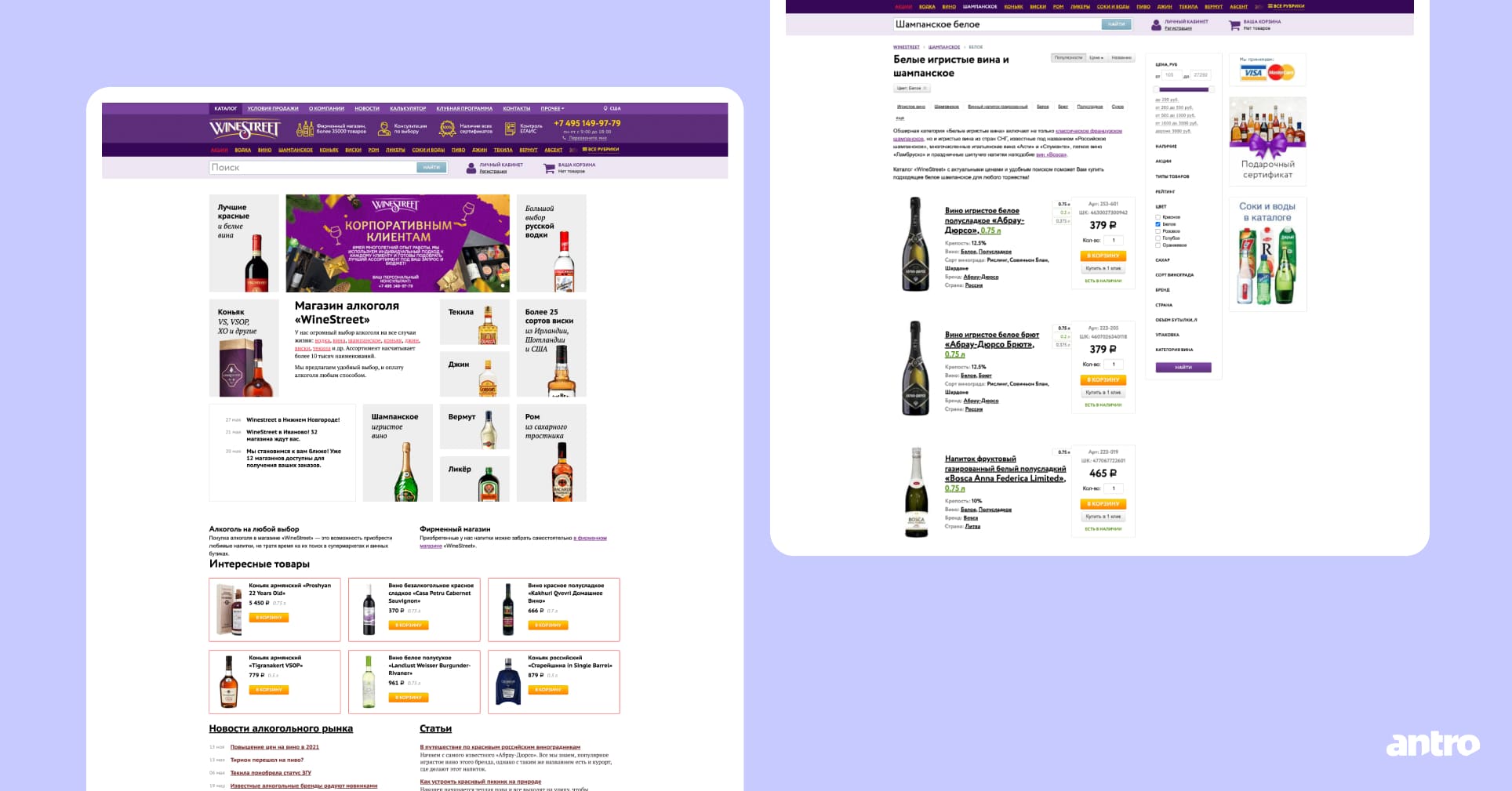 Клиент хотел обновить сайт, чтобы он соответствовал современным требованиям к юзабилити и был удобным для покупателей. Важно было подчеркнуть особенность ассортимента — вина и напитки, которых не найти в супермаркетах, при этом по более выгодной цене.