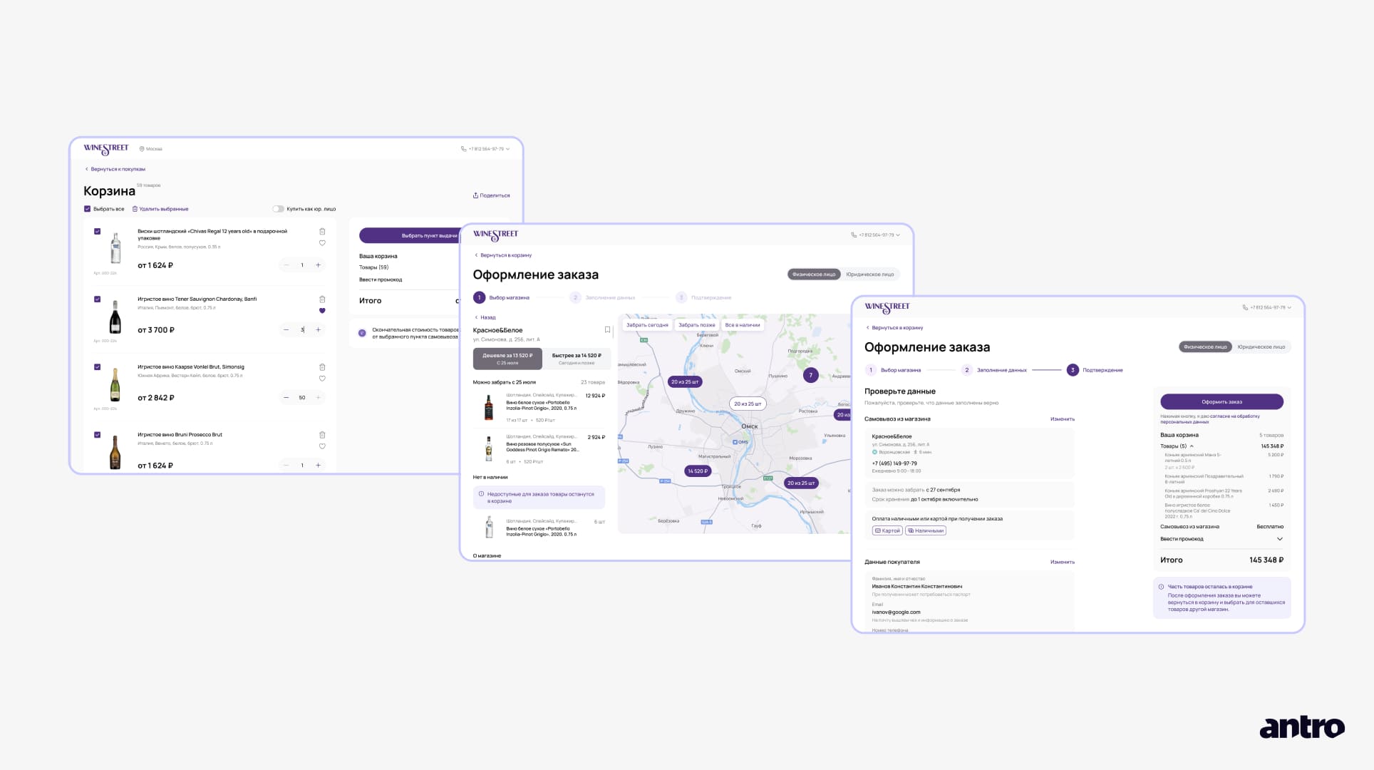 Оформление заказа сделали пошаговым — в три этапа. Такой формат задаёт ожидание по времени и помогает пользователю лучше ориентироваться в процессе.