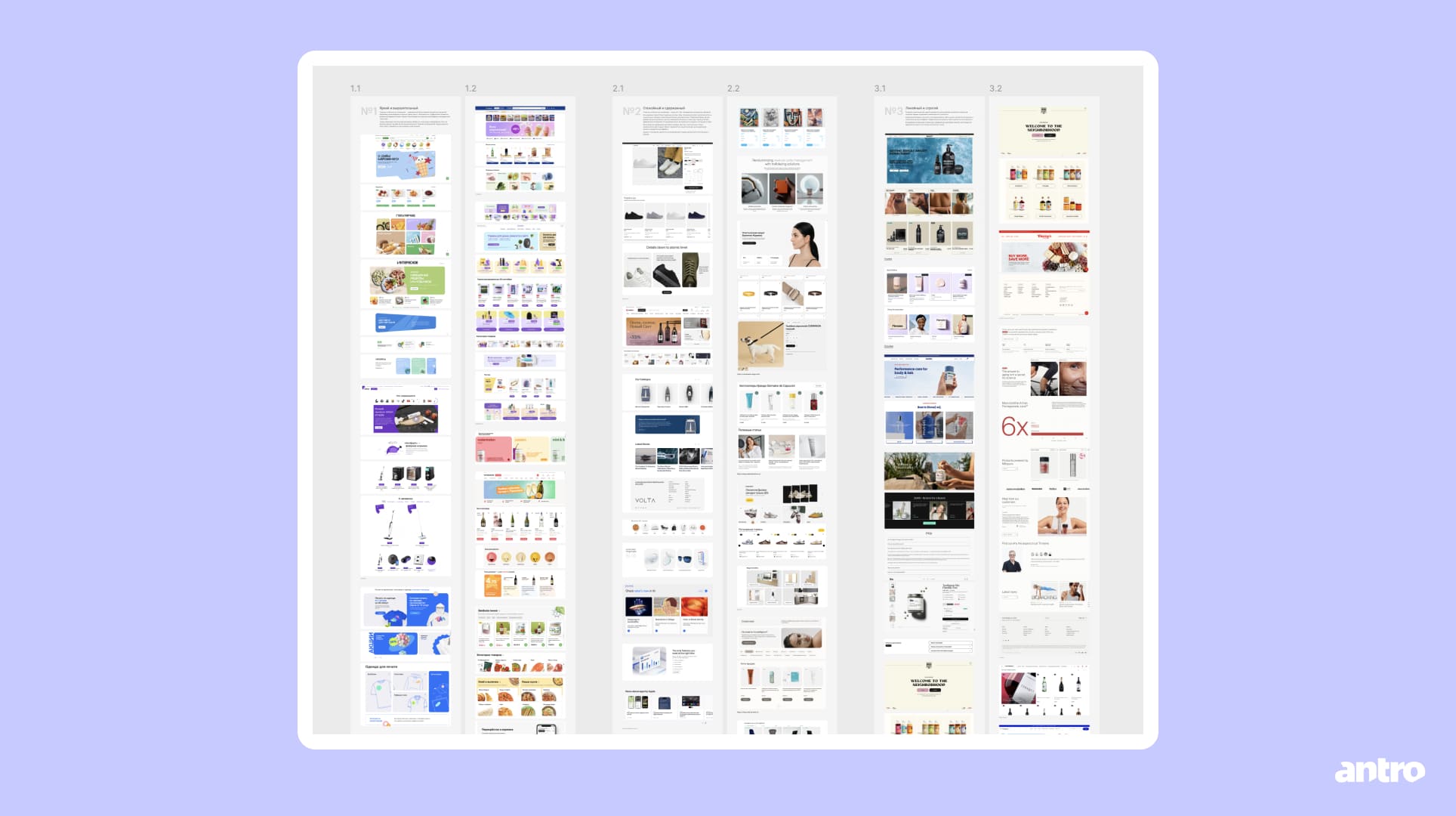 Сначала собрали визуальные примеры (референсборды) — 3 доски с подборками сайтов и деталей интерфейсов, объединенных общими визуальными приемами. Вместе с клиентом выбрали один борд, который отразил бы общую стилистику.