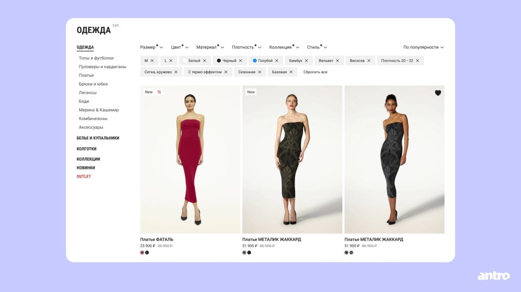 В десктопной версии вернули привычное боковое меню с категориями — теперь пользователи могут быстрее ориентироваться в ассортименте. Также уменьшили число карточек в ряду с 4 до 3 и увеличили их высоту, чтобы они стали крупнее и вызывали больше эмоций при выборе одежды.