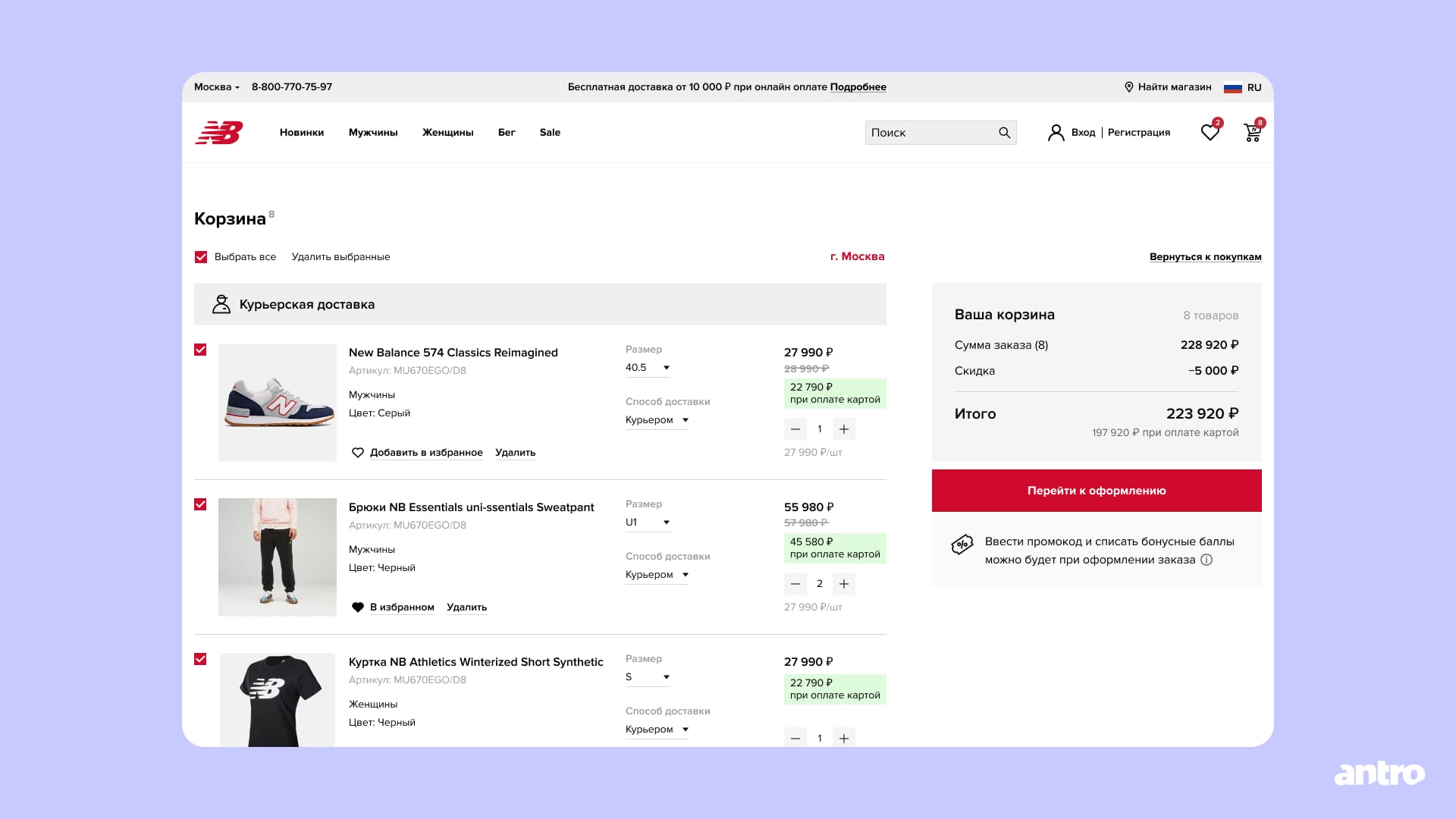 Полностью омниканальную корзину со сложной логикой взаимодействия складов, доставок и программ лояльности мы сейчас разрабатываем. Более подробно об этом решении мы рассказали в нашей другой статье — читать кейс «Омниканальная корзина со сложной логикой для New Balance».